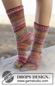 A free knitting pattern using fingering-weight yarn. Pattern attributes and techniques include: Colorwork, Garter Stitch, Stripes.
