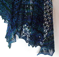 A free knitting pattern using lace-weight yarn. Pattern attributes and techniques include: Lace.
