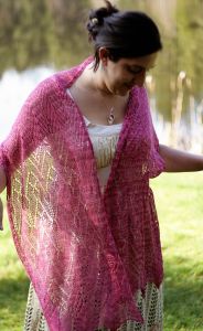 A free knitting pattern using lace-weight yarn. Pattern attributes and techniques include: Lace.