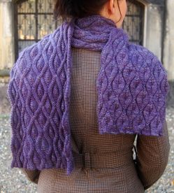 A free knitting pattern using aran-weight yarn. Pattern attributes and techniques include: Lace.