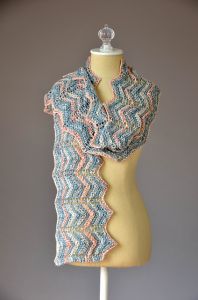 A free knitting pattern using worsted-weight yarn. Pattern attributes and techniques include: Chevron, Ripple.