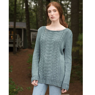 A free knitting pattern using worsted-weight yarn. Pattern attributes and techniques include: Long Sleeve, Round Yoke, Seamed, Textured pattern.
