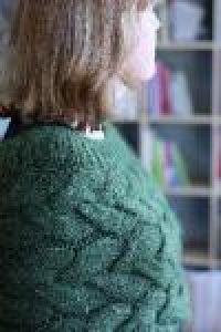 Braided cable cape with ribbing.