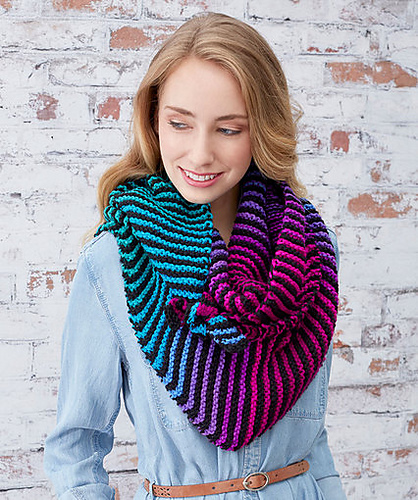 This free knitting pattern uses aran-weight yarn. Pattern attributes and techniques include: Sideways, Stripes.