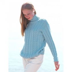 A free knitting pattern using Worsted-weight yarn. Pattern attributes and techniques include: Cable, Long Sleeve, Raglan, Seamed, Turtleneck.