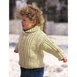 Free knitting pattern using Worsted-weight yarn. Pattern attributes and techniques include: Cable, Long Sleeve, Seamed, Turtleneck.