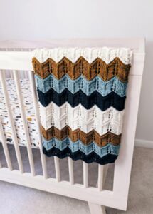 Free knitting pattern using Worsted-weight yarn. Pattern attributes and techniques include: Chevron, Stripes.
