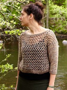 This free knitting pattern uses dk-weight yarn. Pattern attributes and techniques include: 3-Quarter Sleeve, Lace, Seamed.