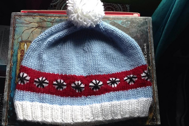 Free men's knitting pattern using worsted-weight yarn. Pattern attributes and techniques include: Fair Isle, In-the-round.