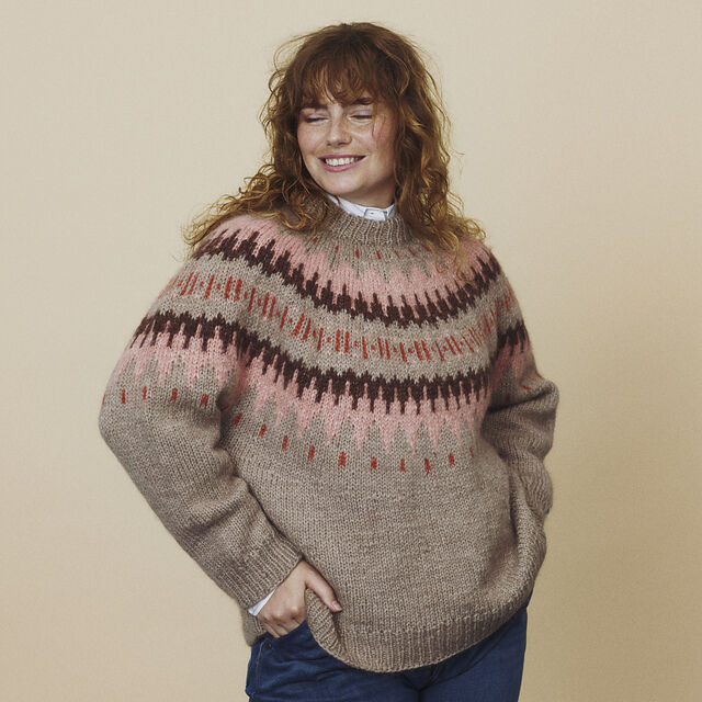 This free knitting pattern uses dk-weight yarn. Pattern attributes and techniques include: In-the-round, Round Yoke, Seamless, Stranded, Top-Down.