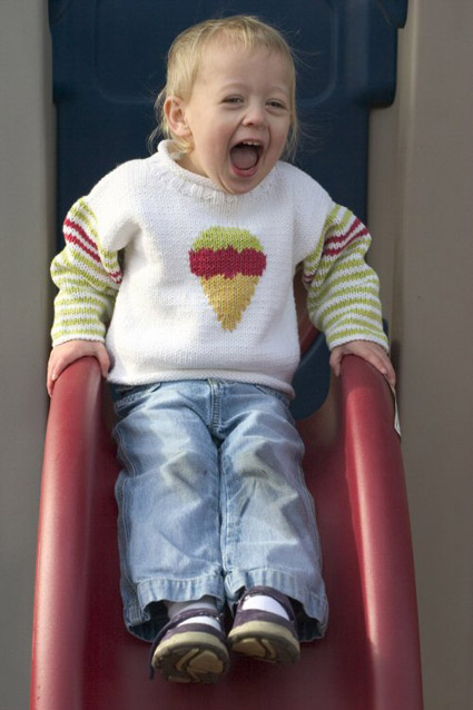 Baby and toddler crew-neck pullover with ice cream cone motif in intarsia.