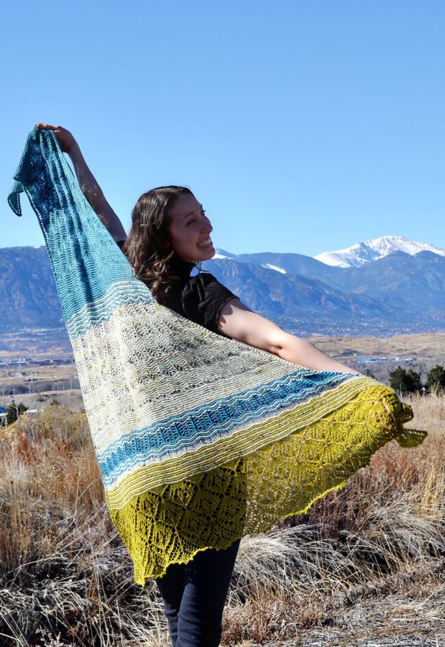 Free knitting pattern using fingering-weight yarn. Pattern attributes and techniques include: Lace.