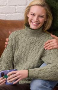 Free knitting pattern using aran-weight yarn. Pattern attributes and techniques include: Cable, Long Sleeve, Relaxed fit, Seamed, Turtleneck.