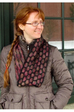 A free knitting pattern using lace-weight yarn. Pattern attributes and techniques include: Colorwork, Mosaic, Seamed.