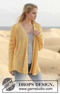 Knitted DROPS jacket with lace pattern and