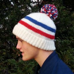 A free men's knitting pattern using bulky-, sport-, super bulky or worsted-weight yarns. Pattern attributes and techniques include: In-the-round, Stripes.