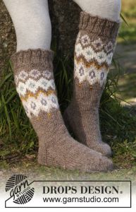 Knitted DROPS socks with textured pattern, multiple size for childen and women
