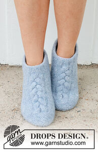 These attractive felted slippers come to us courtesy of Drops Design studio! Featuring a simple cable motif, these are attractive and practical. They are suitable for intermediate knitters or beginners looking to give themselves a bit of a challenge.