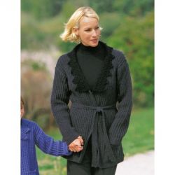 This free knitting pattern uses dk-weight yarn. Pattern attributes and techniques include: Belt, Collar, Long Sleeve, Seamed, V-neck.