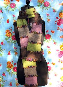 Free knitting pattern using fingering-weight yarn. Pattern attributes and techniques include: Ruffle.