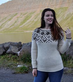 A free knitting pattern using aran-weight yarn. Pattern attributes and techniques include: Round Yoke, Seamless, Stranded.