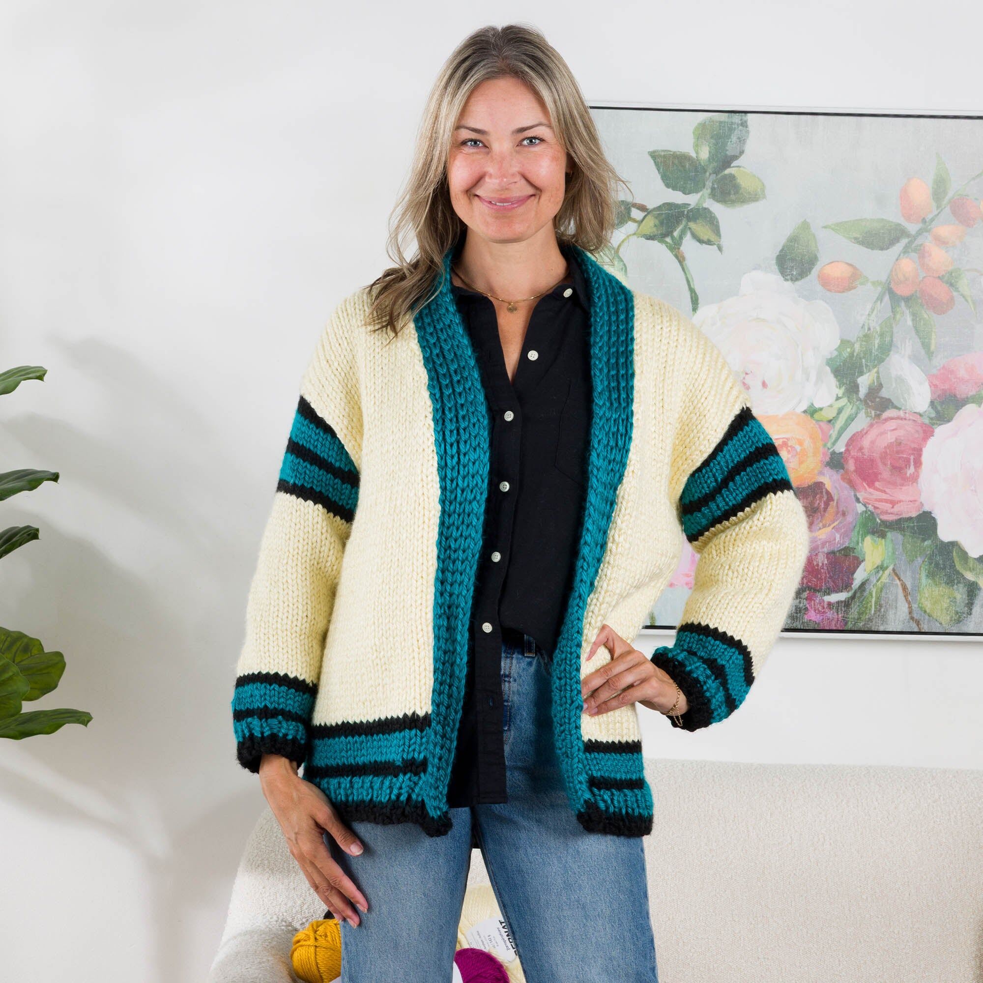 Free knitting pattern using super bulky-weight yarn. Pattern attributes and techniques include: Seamed, Worked In Sections.