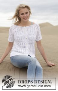 Free knitting pattern using sport-weight yarn. Pattern attributes and techniques include: Bottom-Up, Lace, Raglan, Seamless, Short Sleeves.