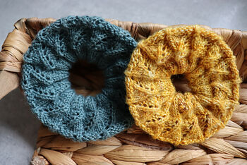 A free knitting pattern using fingering-weight yarn. Pattern attributes and techniques include: In-the-round, Lace.