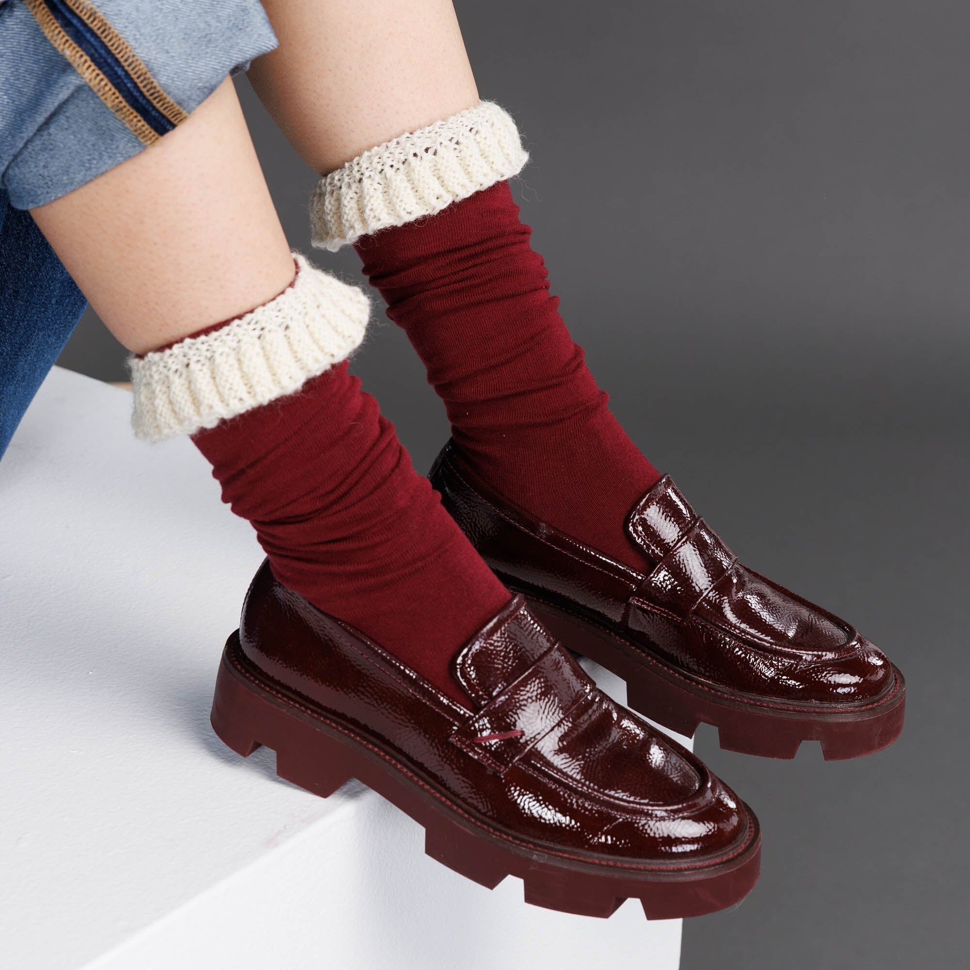 MEASUREMENTS Sleeve Cuffs: Approx 1½" [4 cm] x 9" [23 cm]. Sock Cuffs: Approx 1½" [4 cm] x 11" [28 cm]. Neck Edge: Approx 1½" [4 cm] x 12" [30.5 cm].