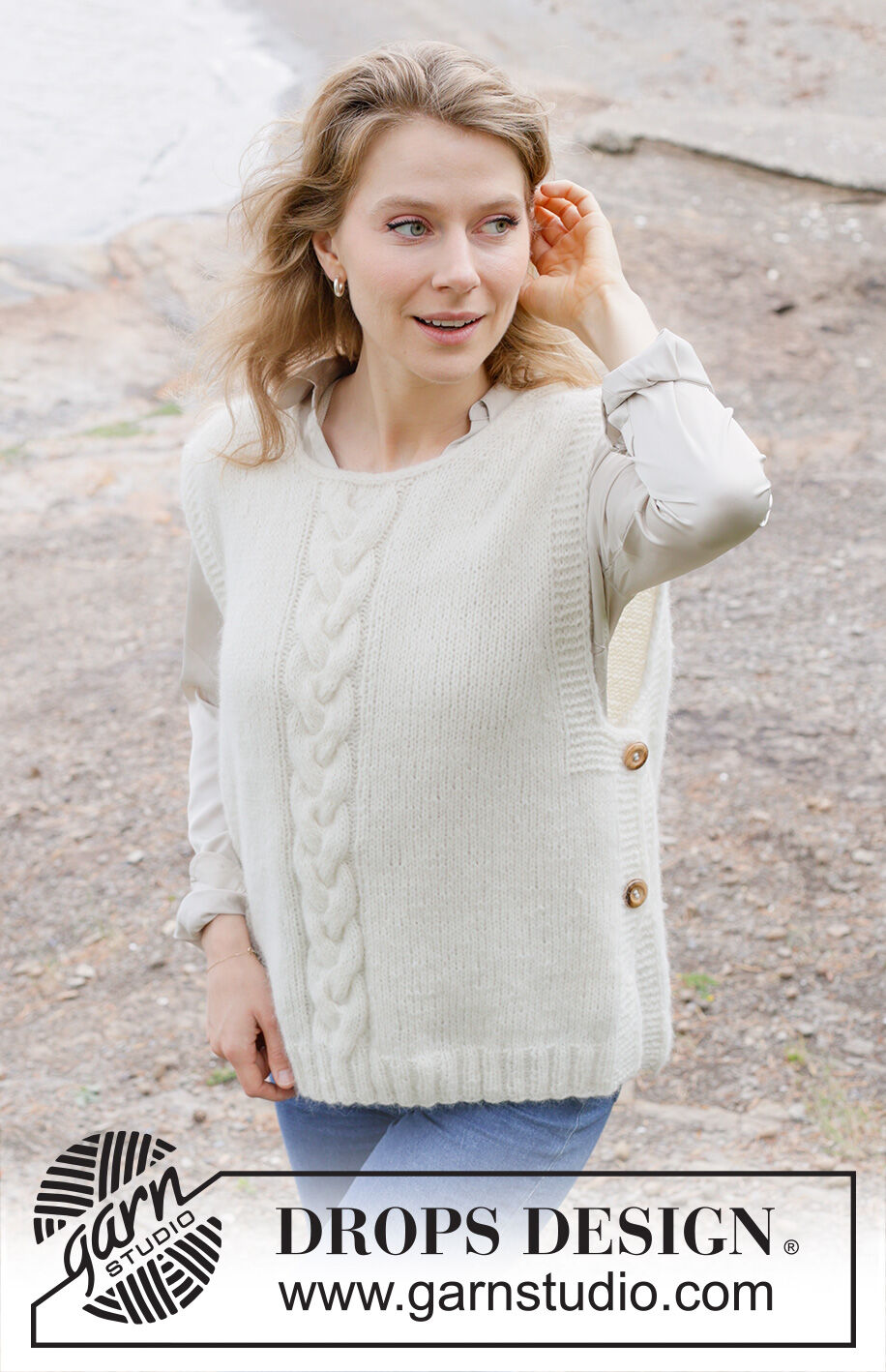 This free knitting pattern uses aran-weight yarn. Pattern attributes and techniques include: Bottom-Up, Cables, Diagonal Shoulder, Split sides.