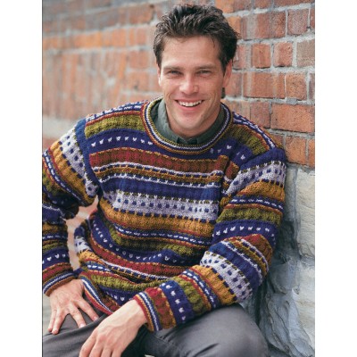 Free men's knitting pattern using worsted-weight yarn. Pattern attributes and techniques include: Colorwork, Crew Neck, Fair Isle, Long Sleeve, Seamed.