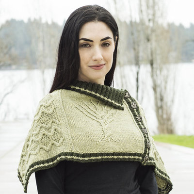 This charming mini-poncho features lovely cablework that is used to create the forest theme, and contrast color accents.