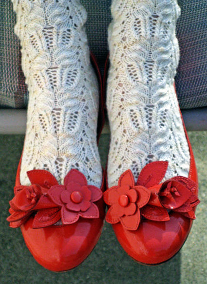 A free knitting pattern using fingering-weight yarn. Pattern attributes and techniques include: Lace.