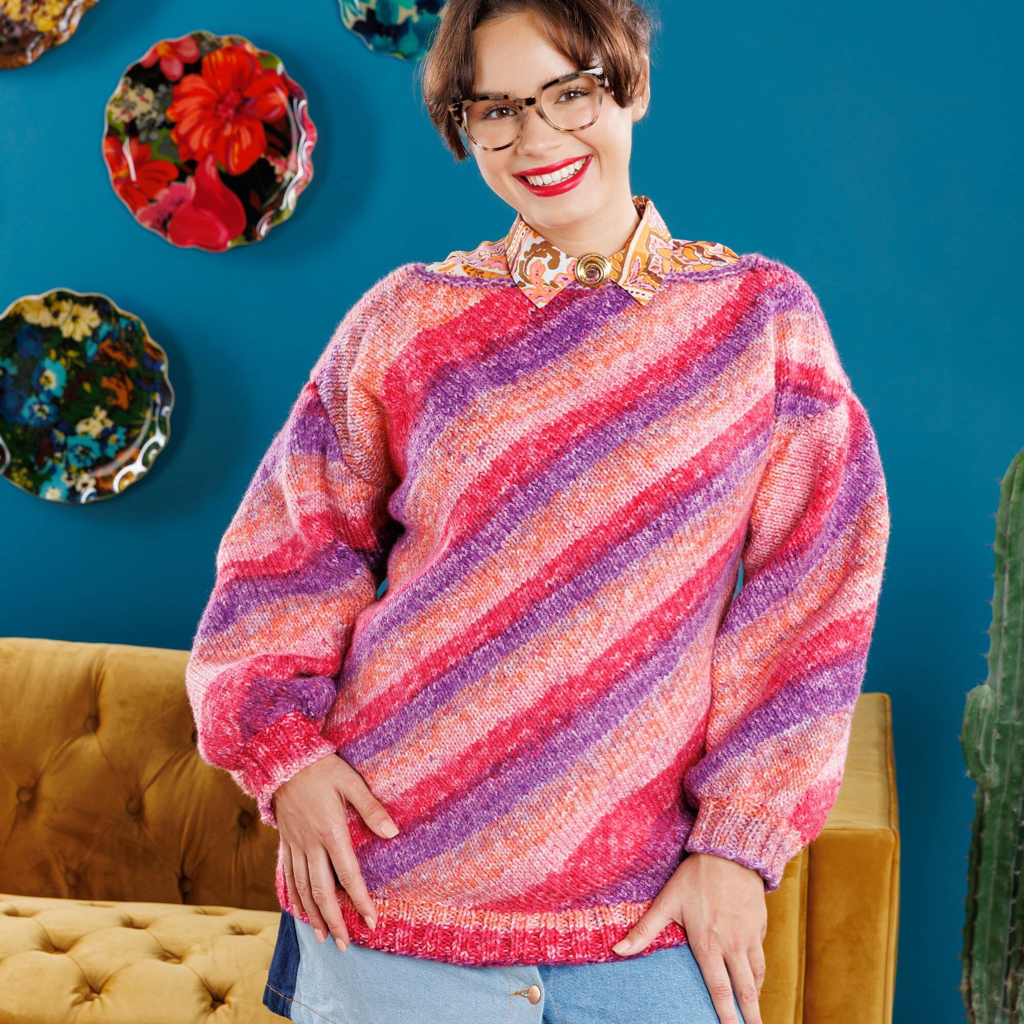 Free knitting pattern using worsted-weight yarn. Pattern attributes and techniques include: Bias, Seamed, Worked In Sections.