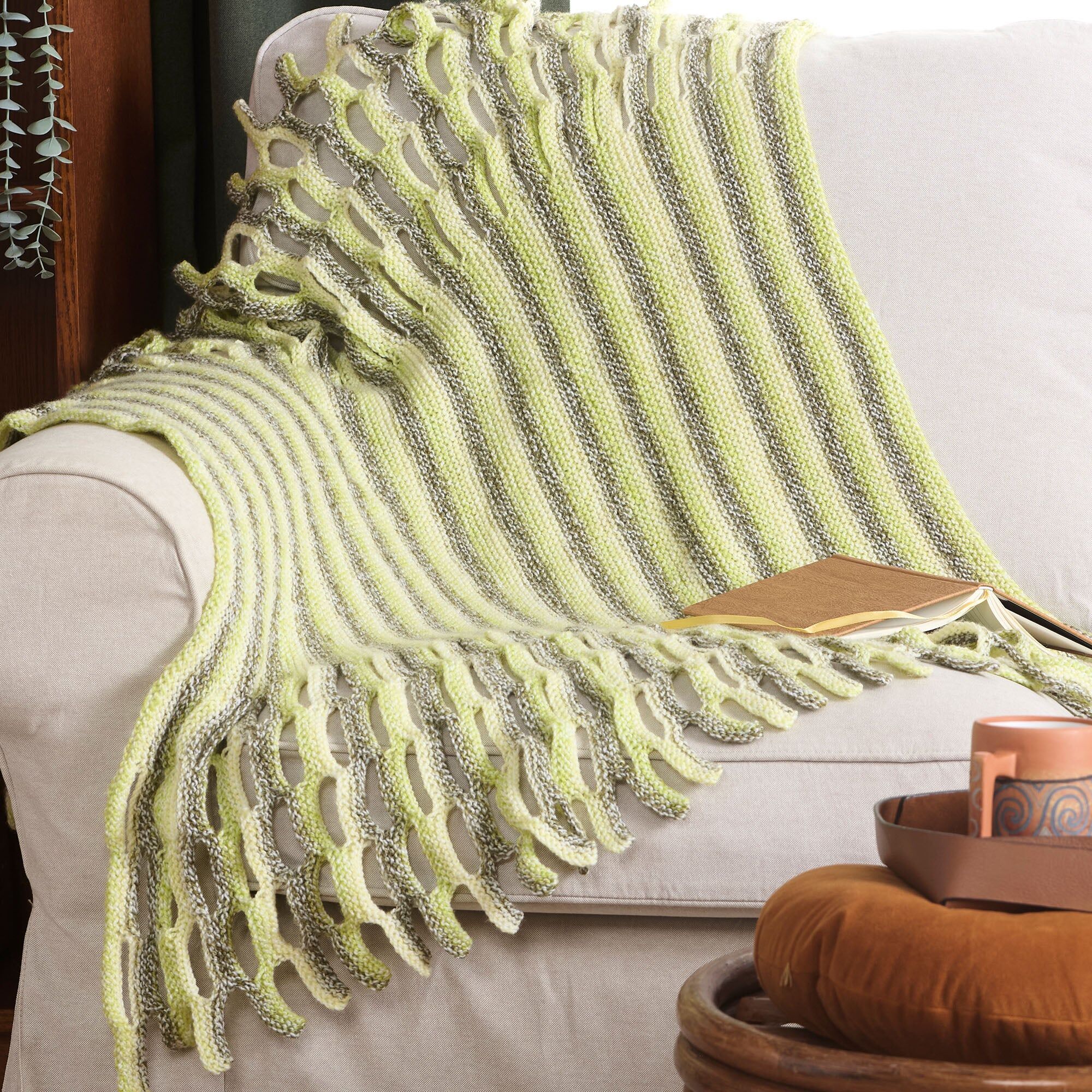 MEASUREMENTS Approx 35" x 51" [89 x 129 cm], including Cast on/Cast off “fringe”.