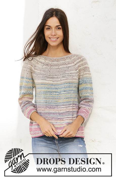 A free knitting pattern using fingering-weight yarn. Pattern attributes and techniques include: 3-Quarter Sleeve, Colorwork, Seamless, Stripes, Top-Down.